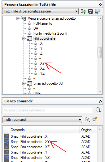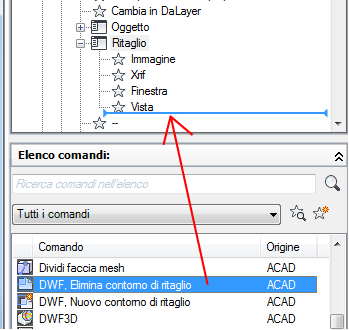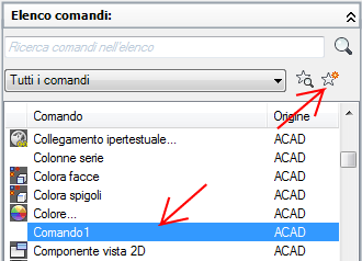L'elenco viene filtrato in modo da visualizzare solo i comandi definiti dall'utente che sono stati aggiunti ai file di personalizzazione caricati.