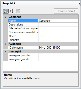 - Nella casella Nome, digitare un nome per il comando. Il valore è utilizzato come nome di default quando viene aggiunto ad un elemento dell'interfaccia utente e all'interno di una descrizione comandi.