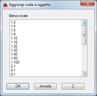 Visualizza l'elenco delle scale che possono essere aggiunte all'oggetto annotativo selezionato.