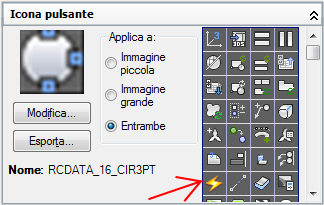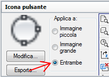 Nel riquadro Icona pulsante, in Applica a, selezionare una delle tre opzioni di assegnazione dell'immagine: Immagine piccola, Immagine grande o Entrambe.