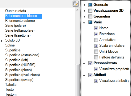 Controllo della visualizzazione di attributi e proprietà personalizzate per i riferimenti di blocco