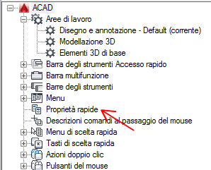 1. Nella scheda Personalizza, nel riquadro Personalizzazioni in <nome file>, fare clic con il pulsante destro del mouse su Proprietà rapide.