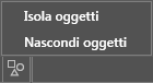 Fare clic sul pulsante Isola oggetti Trova sulla barra di stato per accedere alle opzioni che consentono di nascondere gli oggetti, isolarli e terminare l'isolamento degli oggetti.