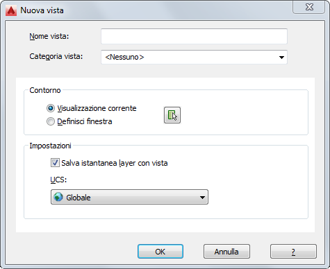 Per le viste modello e layout, specifica un sistema UCS da salvare con la nuova vista.