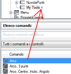 - Nel riquadro Elenco comandi, trascinare il comando da aggiungere alla barra degli strumenti nel riquadro Personalizzazioni in <nome file>.
