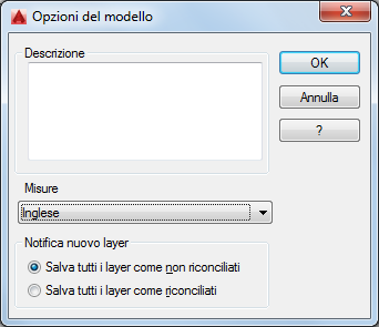 Specifica se il modello di disegno utilizza le unità di misura anglosassoni o metriche (imperiali).
