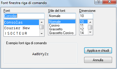 Il font del testo utilizzato nella finestra di comando può essere modificato in base alle proprie preferenze.