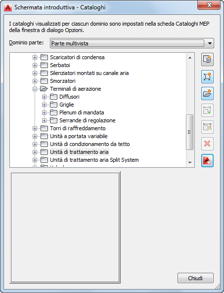 Attenzione: Quando si seleziona un catalogo, è importante analizzare il tipo di parte che si desidera creare o modificare. Le parti multivista appartengono ad un solo catalogo ma è possibile che il dominio delle parti multivista sia diverso per ciascuna connessione.