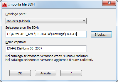 I dati del radiatore nei file BDH sono ricavati da produttori di radiatori, applicazioni per il calcolo del carico del riscaldamento (ad esempio SOLAR COMPUTER Desktop) e software di design per il settore dei radiatori D A CH. I dati del radiatore includono lunghezza, larghezza, altezza, nome dell'azienda e nome della parte. Dopo aver importato un file BDH (.dat), è possibile creare definizioni radiatore nel catalogo MvParts (Global).apc in AutoCAD MEP. Le parti multivista possono quindi essere utilizzate per modellare forma e dimensioni di parti effettivamente utilizzate nel settore, ad esempio radiatori. In AutoCAD MEP, le parti multivista, ad esempio i radiatori, sono organizzate in base al tipo e i dati corrispondenti vengono memorizzati in cataloghi parti. L'aspetto grafico del radiatore è determinato da un modello di radiatore di default. Il modello si trova in \ProgramData\Autodesk\MEP <versione>\ita\MEPContent\Global\MvParts\Plumbing\Radiators\Radiator Template_gbm.xml. È possibile modificare il modello per cambiare l'aspetto del radiatore. Vedere Archiviazione delle parti catalogo e relativo utilizzo come riferimenti.