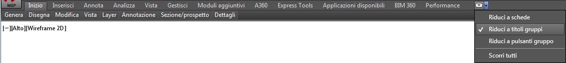 Per visualizzare la barra multifunzione nel caso non sia visibile nell'area di lavoro o sia stata disattivata, immettere barramultif nella riga di comando.