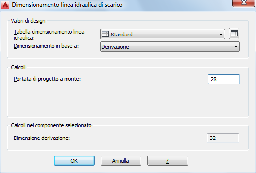 - In Valori di design, verificare che per Dimensionamento in base a sia stato selezionato Derivazione.