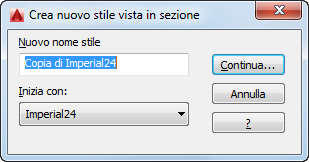 Assegna un nome al nuovo stile di vista in sezione. Per default, il nome del nuovo stile corrisponde al nome assegnato a "Inizia con" preceduto da "Copia di".