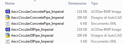 Figura 1: file di catalogo per due tipi di condotta circolare