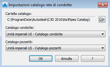 Figura 2: finestra di dialogo per l'impostazione dei cataloghi per le reti di condotte