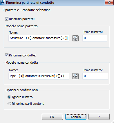Rinomina parti È possibile scegliere di rinominare/rinumerare solo condotte, solo pozzetti o entrambi.