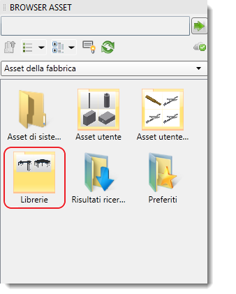 Dopo aver applicato queste impostazioni, il file di progetto associato viene utilizzato come riferimento da Browser asset di AutoCAD Factory per visualizzare gli asset associati, se nel file di progetto è configurata una libreria.