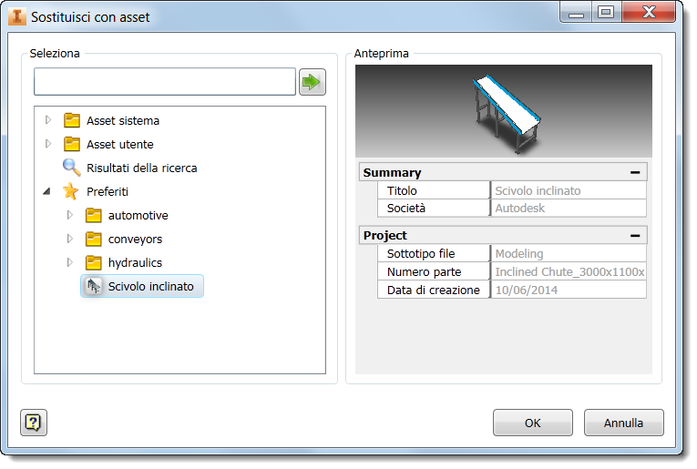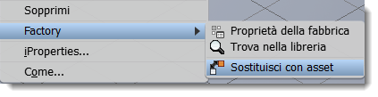 L'opzione Sostituisci, disponibile nel menu contestuale di Factory, consente di sostituire una parte, un sottoassieme o un'istanza di asset con un asset selezionato dalla libreria degli asset. Se, ad esempio, si utilizzano gli asset segnaposto nei layout in fase iniziale, l'opzione Sostituisci offre un modo semplice per sostituire i segnaposto con gli asset completati durante l'elaborazione del layout.