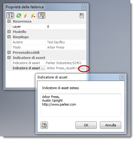 - Immettere le informazioni sull'indicatore nel campo Indicatore di asset. Se il campo non è sufficiente per contenere tutte le informazioni, fare clic sui puntini di sospensione (...) per aprire la finestra Indicatore di asset e immettere il testo. Per altre informazioni è disponibile anche un campo Indicatore di asset esteso. Nel testo è possibile includere collegamenti Internet.