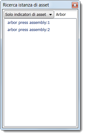 Ricerca. Viene visualizzata la finestra di dialogo Ricerca istanza di asset.