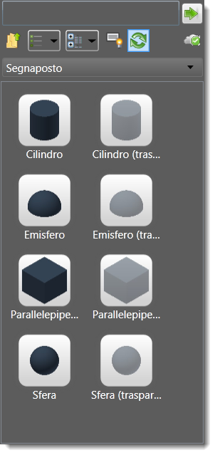 Parallelepipedi, cilindri, sfere e emisferi solidi e trasparenti vengono installati con Factory Design Suite e vengono memorizzati nella cartella degli asset di sistema Segnaposto.
