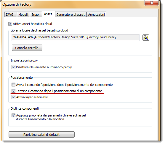 Inventor Factory: Inserimento di asset della fabbrica - Guida di riferimento