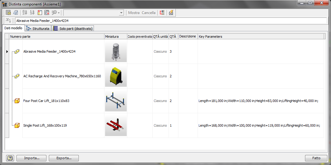 Il comando Distinta componenti eredita la funzionalità delle distinte componenti di Inventor, in modo da consentire la creazione rapida di un elenco delle attrezzature utilizzate nel layout di fabbrica. L'aggiunta di ulteriori informazioni, quali costo, descrizione o parametri chiave, consente di utilizzare la distinta componenti delle attrezzature per creare raggruppamenti dei costi per i layout di fabbrica.
