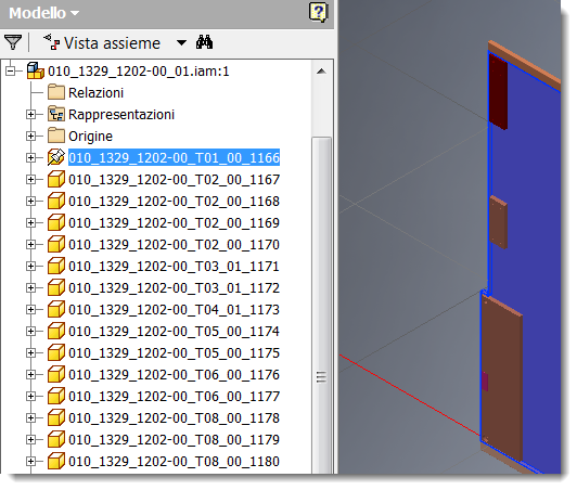 - Fare clic sul segno + accanto all'assieme importato nel browser Modello.