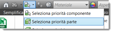 - Dalla barra dei menu, modificare la priorità di selezione in Seleziona priorità parte.