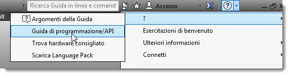 - Selezionare Guida nel menu a discesa ? di Inventor.