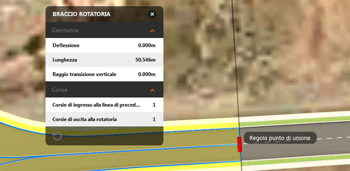 - Fare clic su un braccio della rotatoria per selezionarlo.