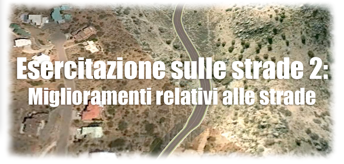 La seconda esercitazione riguarda la modifica dello stile della strada in sezioni specifiche, ad esempio per incrementare il numero di corsie o per regolare le scarpate. È anche possibile lavorare con un altro metodo sulle corsie e su altre parti della sezione tipo della strada. Tale metodo è descritto in Strade a componenti nell'Esercitazione 5. Tuttavia, le strade a componenti sono ancora un'anteprima al momento della pubblicazione della presente esercitazione. In questi esercizi si apprenderà come aggiungere questi miglioramenti alle strade di progettazione.
