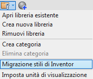 - Nella barra degli strumenti del browser, fare clic su Gestisci > Migrazione degli stili di Inventor.