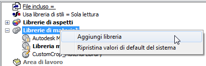 - Fare clic con il pulsante destro sul nodo Librerie di materiali e selezionare Aggiungi libreria.