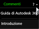 Fare clic su http://www.autodesk.com/adsk360-help-ita per accedere direttamente alla guida di Autodesk 360. È inoltre possibile accedere alla guida da Autodesk 360: