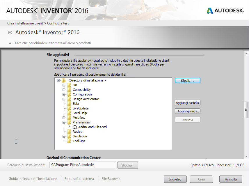 Come amministratore, è possibile gestire i moduli aggiuntivi che vengono caricati mediante la modifica e la distribuzione di AddInLoadRules.xml. Per default, il file viene installato in: %appdata%\Autodesk\Inventor 2016\Addins\AddInLoadRules.xml.