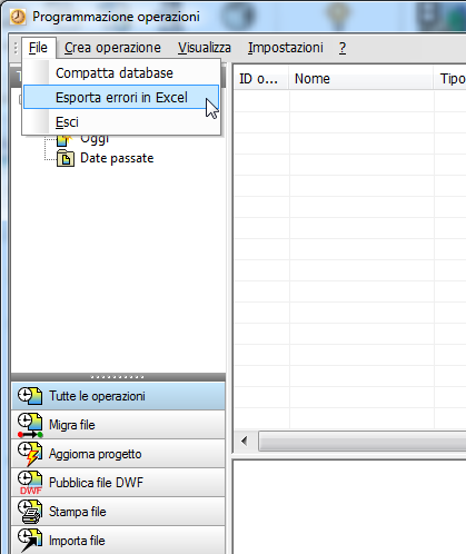 Esporta errori in Excel si trova nel menu File di Programmazione operazioni e nel menu contestuale di un'operazione selezionata.