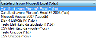 Nel menu a discesa è ora disponibile un nuovo elenco di formati accettabili per esportare la distinta componenti globale, gli elenchi delle parti e le tabelle revisioni.