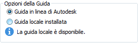 In Inventor, ora è possibile specificare se accedere alla Guida in linea o alla versione locale scaricata. Una volta installata la Guida locale, è possibile passare dalla versione locale a quella in linea in qualsiasi momento. Impostare le nuove Opzioni della Guida nella finestra di dialogo Opzioni applicazione, scheda Generale.