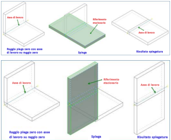 Dopo la ripiegatura, i riferimenti creati con la spiegatura del modello rimangono. Questo comportamento è lo stesso nei casi con raggio piega diverso da zero.