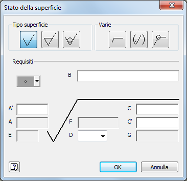 Nota: Quando si apre un disegno creato in versioni precedenti di Autodesk Inventor, l'aspetto dei simboli di stato della superficie viene mantenuto. Per applicare un nuovo layout ai simboli di stato della superficie, modificare il Riferimento norma nello stile Stato della superficie.