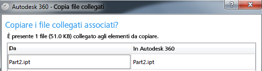 Quando si salva un file in Autodesk 360, vengono aggiunti il file corrente e tutti i file dipendenti.