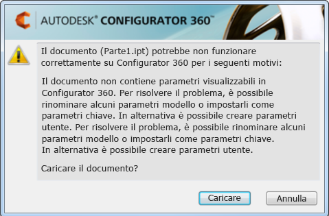 - Configurator 360 legge i parametri e visualizza una finestra di dialogo modificabile.