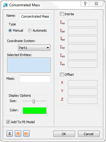 Per creare una massa concentrata, fare clic con il pulsante destro del mouse su Masse concentrate nella struttura Modello, quindi scegliere Nuovo per aprire la finestra seguente.