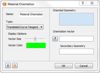 Opzioni di visualizzazione consente agli utenti di modificare la dimensione e il colore del vettore di orientamento del materiale.
