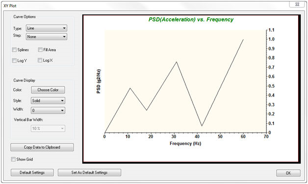- Confronto tra PSD (accelerazione) e frequenza: questa impostazione viene utilizzata per definire la curva PSD in termini di accelerazione con frequenza per la soluzione di risposta casuale.