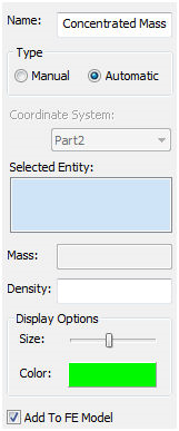 - Aggiungi al modello FE: questa casella di controllo consente di inserire automaticamente questa massa concentrata in Modello FE.
