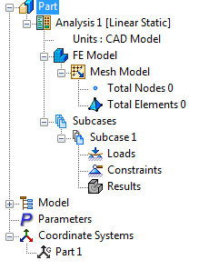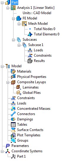 La struttura del modello Autodesk Nastran In-CAD fornisce una pratica panoramica delle diverse entità del modello a elementi finiti create.