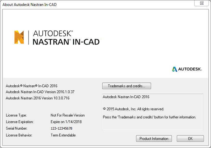 Informazioni su: visualizza la versione di Autodesk Nastran In-CAD e altri dettagli, come mostrato nell'immagine seguente.