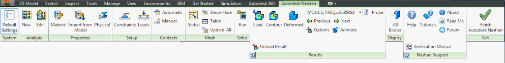 . Verrà aperta la barra multifunzione di Autodesk Nastran, come mostrato nella figura seguente.