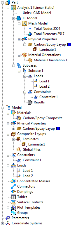 Layup compositi consente di definire Laminati e Fogli globali associati alla proprietà fisica elemento Shell per l'analisi dei compositi. Tutti i laminati e i fogli globali definiti sono accessibili nella proprietà fisica elemento Shell rispettivamente nella casella combinata Laminato e nella finestra di dialogo Laminato.